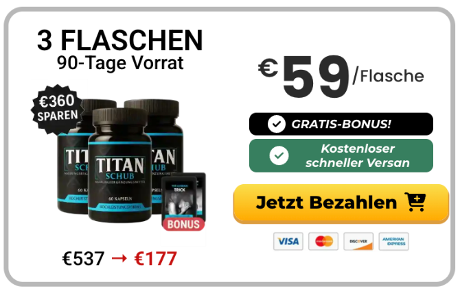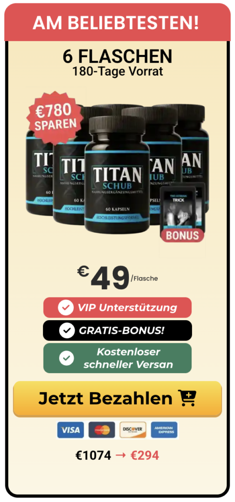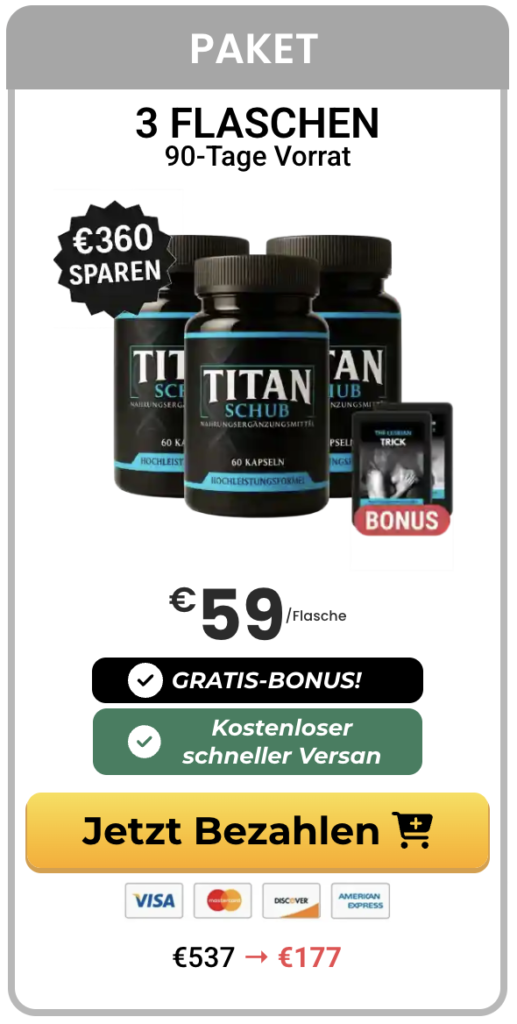 Während die Ergebnisse individuell unterschiedlich sein können, zeigen viele Erfahrungen, dass TitanSchub dabei hilft, Energie, Leistungsfähigkeit und Selbstvertrauen auf natürliche Weise zu unterstützen.